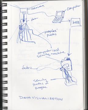 Interactive installation about shoes. Data output resembled a woven Navajo blanket.
